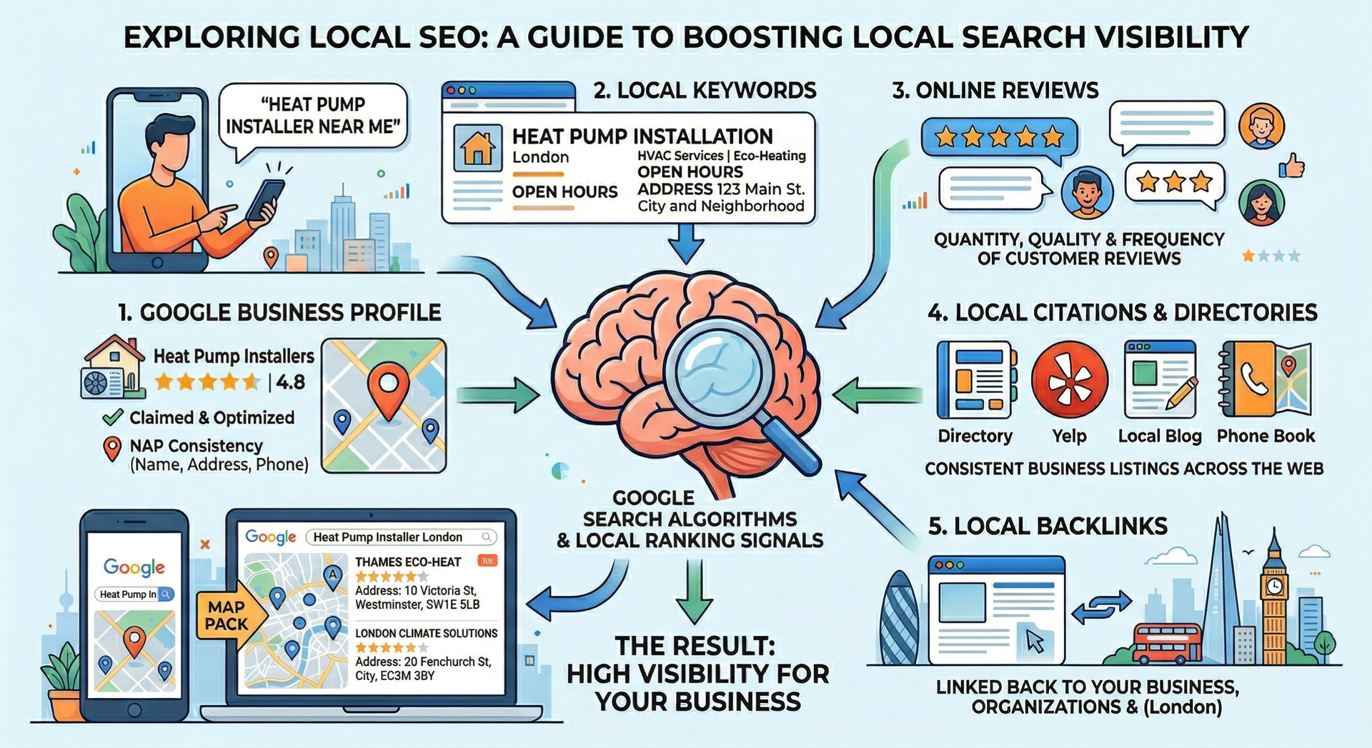 - AI Assistants: "Gemini, who is the best heat pump installer in Wimbledon?"